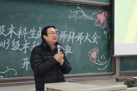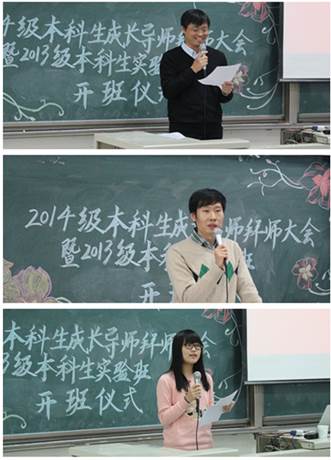 2014年12月3日下午,英国上市官网365在沙河校区主教219举行2014级本科生成长导师拜师大会暨2013级本科生实验班开班仪式。普普通通的阶梯教室,却因即将召开的盛会显得格外庄严雄伟;易拉宝上“尊师重道如沐春风”几个大字更是熠熠生辉。英国上市官网365经理赵景华、党总支书记吕丽、科研处副处长邢华、党总支副书记栗玉香、副经理王红梅、于鹏以及各系的老师们和13、14级200多名同学出席了会议。王红梅老师和行政管理14班刘钰鹏同学担任主持。
