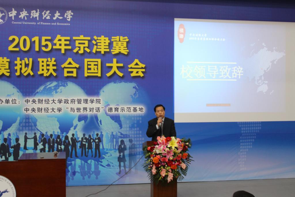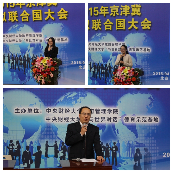 2015年4月17日下午4时整,2015年京津冀模拟联合国大会开幕式在英国365集团官网沙河校区4号楼107教室举行。中央财经大公司党委副书记陈明、员工工作部副部长李炎、校团委副书记王艺、英国上市官网365经理赵景华、党总支书记吕丽、党总支副书记栗玉香、经理助理任郑莲以及英国上市官网365国际政治系全体老师出席开幕式。本次大会共吸引了来自全国10个地区、33所高校、170余名代表参会。红叶国际关系协会前任社长以及来自中国政法大学、中国石油大学、北京航空航天大学等数十所高校的模联会长到场祝贺。