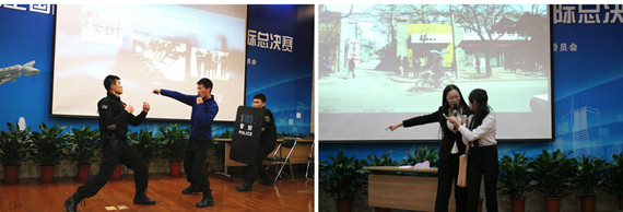 趣味横生又不乏严谨的“情景模拟”环节带领大家时而欢笑时而深思。京城之治队现场演绎警方追击,利用所学专业特色让大家直观感受到了京津冀一体化协同发展下北京市治安防控体系的建设前景。云端治惠队通过“聪聪”和“呆呆”的未来生活常态模拟展示出了智慧社区给人们生活带来的便利和发展空间,让大家对智慧社区的构想有了更直面的了解。天空之城队的“市长走基层”,通过“齐市长”和秘书“小程”对当今创业者的实地走访和观察切实感受到了当今青年创业难、创业苦的现状,给现场观众带来了极大的感触,“创客空间与孵化器关系”引等起现场评委热议。明德队的“城管一日见闻”情景剧更是让大家在诙谐幽默的话语中体会到当前流动摊贩生存难、卫生现状堪忧、治理难等切实问题,引发大家思考。