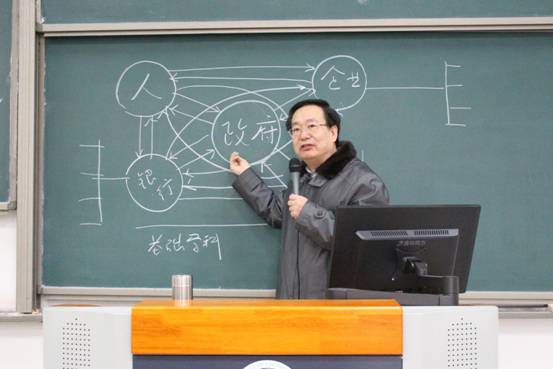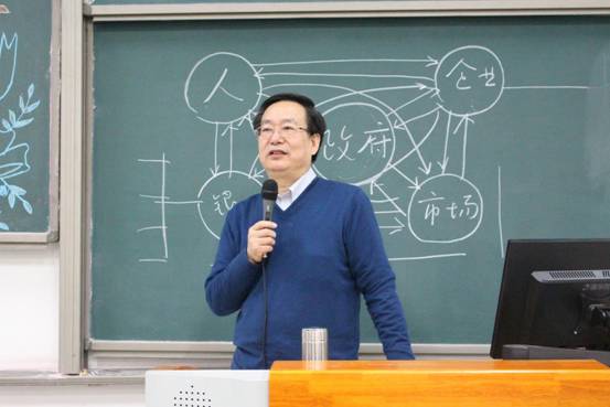 赵经理首先谈到公共管理学科的发展问题。他依次分析了从建国前到改革开放后各个时期内发挥作用较大的学科,并指出:在中国,公共管理学科起主导作用的时代已经到来。正如习近平总书记在十九大报告中提到的“推进国家治理体系和治理能力现代化”,赵经理希望同学们用发展的眼光看问题,做充满使命感、责任感、未来感的青年人。他说道:“如果大学四年,你能够确定你一生的使命,这就是最幸运的事情。”接着,赵经理用画图的方式让同学们理解在中国国民经济的运行中不同学科分别起到的作用,就政府、人、企业、市场、银行这五个要素两两之间的双向关系分别列举了相关的研究学科。赵经理说:“公共管理绝对不是就政府谈政府,政府管理的范围十分广泛,公共管理的事业是非常宽广的”,他希望同学们认真思考怎样选择职业,为什么而奋斗,想成为什么样的人,并能够自觉抵制机会主义,在学科发展的广阔天地中找到属于自己的奋斗目标和奋斗位置。