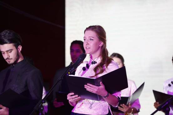 国际友谊队吟唱《职工遇见中国诗词》。中华诗词的魅力之大,令国际友人都为之陶醉、为之折腰。中华经典文化灿若星河,是沟通中国与世界的桥梁。