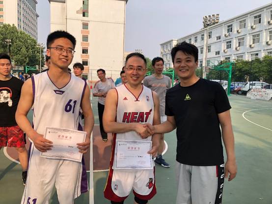 比赛结束后,校教工篮球协会秘书长李漠叶老师为来自教工队的“单挑王”曹堂哲老师与来自MPA队的“金投手”黄英颁奖,团委副书记刘家琦为本科生队和学术研队颁奖,副经理于鹏老师为教工队和MPA队颁奖。