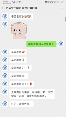 为减少重要证件及贵重物品与大件行李一同托运产生的风险,公司五名辅导员一对一了解需求,深入宿舍,于6月28日提前进行了笔记本电脑、化妆品等贵重物品的整理、邮寄和寄存工作以及毕业证、学位证、获奖证书和其他个人重要文书材料的整理、分袋、打包、标签和邮寄工作。