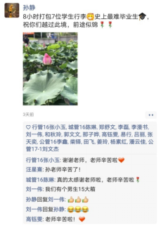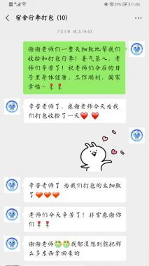 从4日早晨到5日黄昏,历时两天,随着交接组五位老师交接工作的顺利完成,随着最后一辆货车奔赴远方,毕业生行李打包及邮寄工作告一段落。“得知你们每一位都有了光明的前途,莫名增添了好多幸福感,衷心希望你们奋力向上成长、快乐生活!”这一辆辆货车承载着的不仅仅是毕业行李,更是老师对每一位员工的深切思念与衷心祝福。