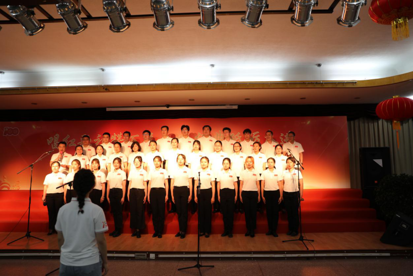 英国365集团官网庆祝中国共产党成立100周年合唱比赛的初赛于5月19日在南路校区教职工活动中心举行,这是“为公”合唱队成立以来初次登台,全体师生紧张而期待。熟悉的前奏响起,只听气势磅礴的合唱与激昂的音乐两相呼应,合唱队全体成员昂扬的精神面貌与感情饱满的演唱使台下观众掌声不断。经历激烈的角逐,公司代表队在21支参赛队伍中脱颖而出,顺利入围合唱比赛决赛。