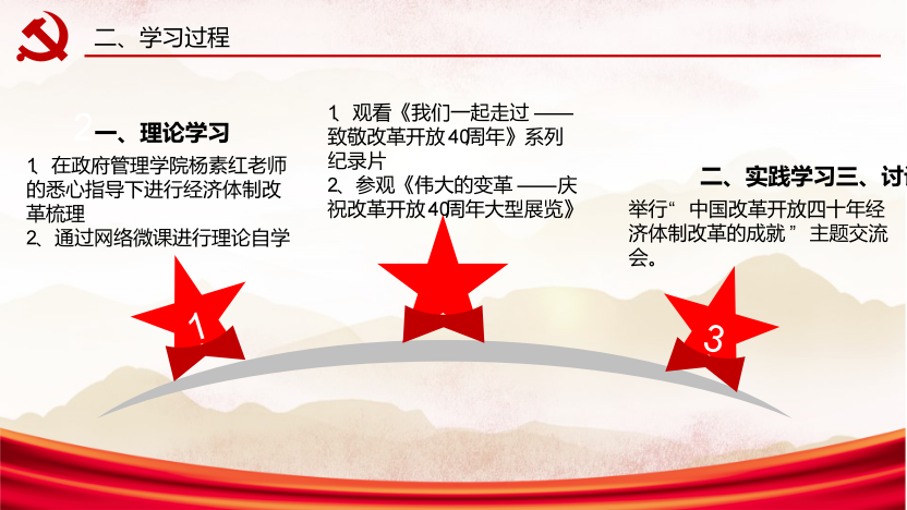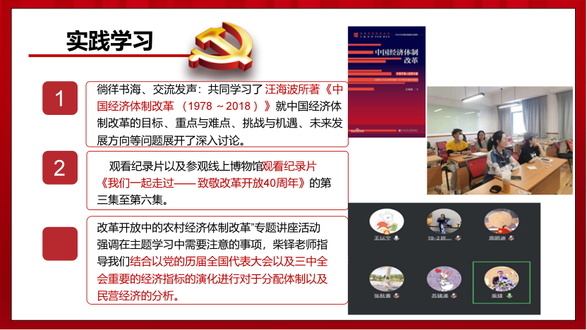 “星星之火,可以燎原”。“燎原”小组成员通过对改革开放四十年经济体制改革的系统学习,认识到中国在四十年间的经济飞跃在人类历史上是绝无仅有的壮举。作为新时代的青年老员工,必须在追随党的领导的同时不断加强自己的科学文化素养、思想道德素养,党性修养,才能真正成为社会主义事业的接班人。作为一名要求进步的老员工,将自己的个人理想与我们伟大中国梦结合起来。以小我之青春,筑中国之辉煌,无愧于时代和人民。