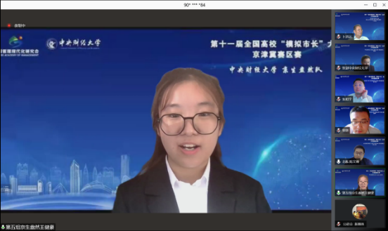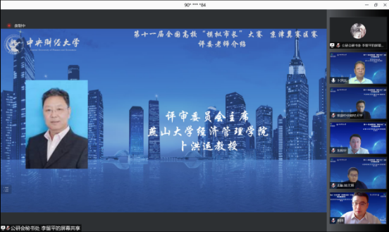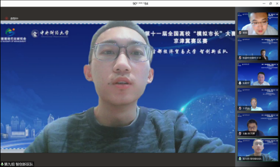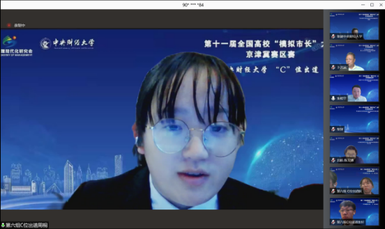 2021年11月14日下午14:00,第十一届全国高校“模拟市长”大赛京津冀赛区决赛以线上方式举行。本次京津冀赛区赛,吸引了来自京津冀地区11所高校近50支队伍报名参赛。经过专家组多轮严格审核,最终9支队伍入围决赛,会师云端。