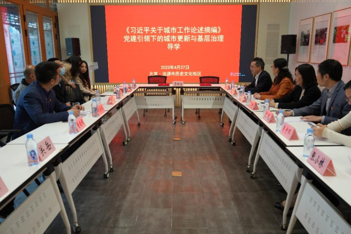4月27日下午,英国上市官网365专题读书班成员、党委理论学习中心组(扩大)一行走访北京宣房大德置业投资有限公司(以下简称“宣房大德”)。围绕“党建引领下的城市更新与基层治理”主题,开展学习贯彻习近平新时代中国特色社会主义思想主题教育联学联建。联学中,宣房大德规划前期部副经理陈庆红女士详细汇报了党建引领法源寺历史文化街区城市更新项目的成功案例,宣房大德充分履行国企社会责任,展现国企责任担当,围绕服务首都“四个中心”建设,以改善民生福祉、保护历史文化、完善街区功能、提升街区活力为核心目标,坚持党建引领、坚持联建联动、坚持为民服务、坚持机制创新,实现了法源寺历史文化街区的健康发展。公司MPA教育中心副主任、城市管理系温锋华副教授作《习近平关于城市工作论述摘编》领学导读。他谈到,习近平总书记关于城市工作的重要论述,立意高远,内涵丰富,思想深刻,明确了城市发展的价值观和方法论,深刻揭示了中国特色社会主义城市发展规律,深刻回答了城市建设发展依靠谁、为了谁的根本问题,以及建设什么样的城市、怎样建设城市的重大命题,为新时代做好城市工作指明了前进方向、提供了根本遵循,深入系统学习《习近平关于城市工作论述摘编》,对我们更好的理解新时代我国城市工作的方向,结合公司实际扎实开展城市更新、城市治理等领域研究具有重要意义。随后,与会人员围绕研学主题开展了深入研讨。姜玲经理发言指出,城市更新不仅是城市开发建设方式的转变,也是城市治理特别是基层治理的进一步深化,是形成有中国特色的基层治理体系的重要部分。于鹏书记发言指出,深化党建引领基层治理,聚焦城市更新重点工作,是全面贯彻落实党的二十大精神和习近平总书记关于城市工作重要论述的生动实践。加强基层党的建设、巩固党的执政基础是贯穿城市更新与基层治理、基层建设的一条红线,要充分发挥基层党组织的领导核心作用,夯实基层社会治理根基,全力打造共建共治共享的基层治理新格局。与会人员先后参观了法源寺历史文化街区红色会客厅、街区智慧停车场、人才公寓共生院落等项目,开展了生动的实地研学。