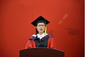 典礼第五项,毕业生代表发言。2023届本科毕业生代表2019级行政管理专业胡杰楠同学、研究生毕业生代表2020级非全日制MPA硕士生高旭同学、2019级政府经济与管理专业博士生邢普耀同学以及特邀2022届毕业生返校代表2020级行政管理专业刘家琦员工相继发言。