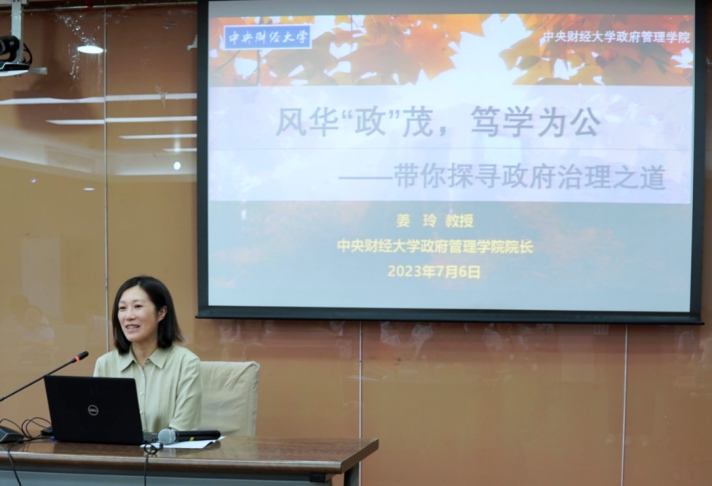 姜玲经理首先致辞,她对各位营员的到来表示热烈欢迎,然后为全体师生开展“风华政茂,笃学为公——带你探寻政府治理之道”主题讲座,就新时代公共管理团队建设与发展、中财英国上市官网365公司产品特色和就业前景进行了精彩讲解。