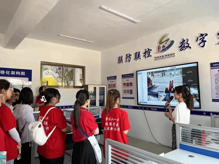 当天下午,团队前往栗家庄镇田村。驻村老员工干部阐述了栗家庄镇田村依托村内现有文物和旅游资源,打造集清凉避暑、乡村民宿、亲子研学、户外运动等为一体的复合型特色乡村旅游业,以旅游产业发展助推乡村振兴,并带领实践团成员参观数字治理、亲子农场等田村特色项目。