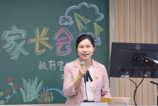 最后,2023级本科生辅导员周明迪老师对自己的日常工作进行了简单介绍,并提出了五个关键词与家长进行分享。第一点是“适应”,希望大家能快速适应生活环境、学习方式等的转变。第二点是“红线”,周明迪老师针对几个底线问题进行了说明。第三点是“放手”,希望家长们可以进行适当地放手,给员工们自由成长的空间。第四点是“沟通”,希望家长与公司紧密联系来共同守护员工们的成长。最后一点是“安全问题”,希望大家能提高警惕,保证自身安全。周明迪老师还为新生提出了七点建议来更好地帮助新生同学们适应老员工活,提升个人综合能力。