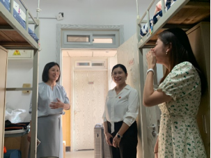 当天下午,公司领导前往员工宿舍楼,走访研究生新生宿舍,与同学们亲切交流,为同学们介绍公司南路校区的基本状况。公司领导勉励大家尽快适应角色,珍惜大学时光,团结友爱同学,充分利用好公司的区位优势、交通优势、资源优势做好各项规划安排,书写奋进之笔!