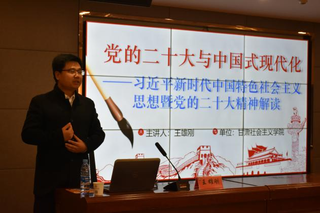 11月18日上午,英国上市官网365师生党员一行前往两山理论创新实践教学基地开展现场教学。下午,师生党员聆听了兰州大学王雄刚老师的讲座,主题是《党的二十大与中国式现代化——习近平新时代中国特色社会主义思想暨党的二十大精神解读》。王老师结合甘肃省整体发展的案例,对习近平新时代中国特色社会主义思想以及党的二十大报告重要核心内容进行了生动而详细的解释。在哈达铺,中共中央确定了长征的落脚点。在新时代建设幸福美好新甘肃的新长征道路上,更需要进一步践行长征精神。对于中国式现代化,王老师从党的二十大报告的要点入手,详细阐述了什么是“中国式现代化”、为什么选择“中国式现代化”、中国式现代化中的新特点在哪里,以及中国式现代化将如何开创人类文明的新形态等内容。