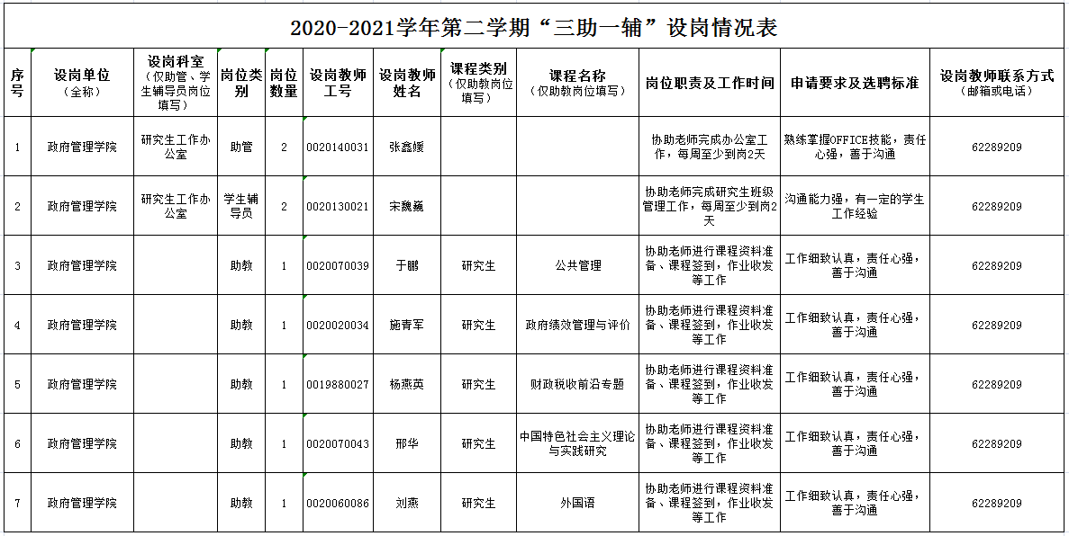 英国上市官网3652020-2021学年第二学期“三助一辅”设岗情况表