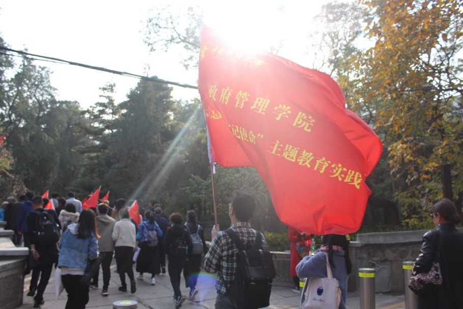 离开双清别墅后,全体党员共同参观中共中央“四大书记”的住地来青轩,并于中央警卫团住地的院子里集合,在本科生党支部书记李莎莉老师的主持下,开展诗歌朗诵、重温入党誓词和歌唱祖国三项活动。