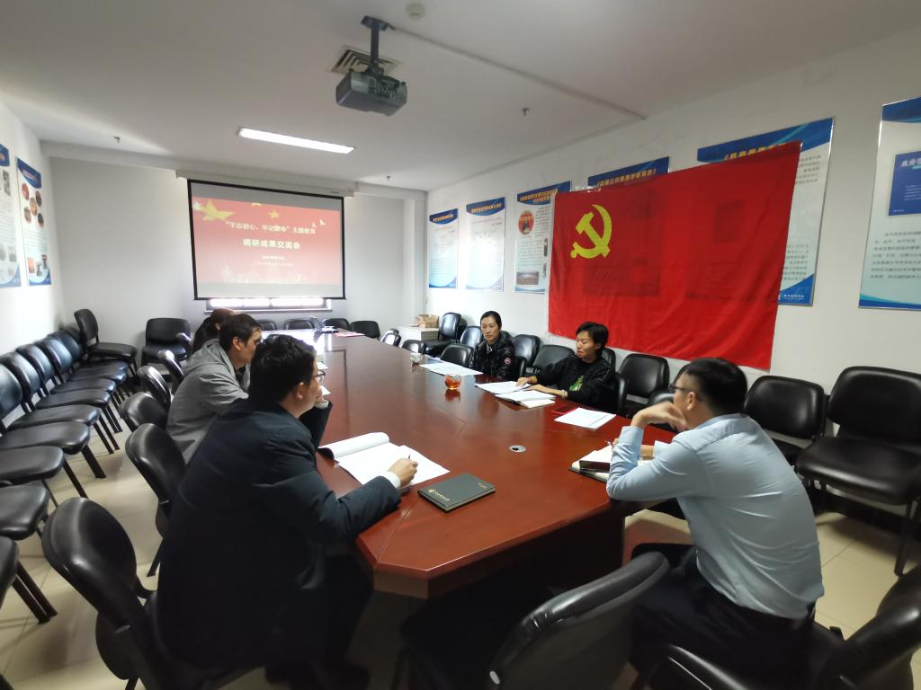 10月29日下午,公司党委在中财大厦932会议室召开“不忘初心、牢记使命”主题教育调研成果交流会,院领导班子成员交流汇报了调研进展和成果,交流会由公司党委书记吕丽主持。