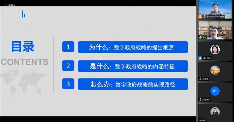 2022年6月15日上午,公司“为公讲堂”系列学术讲座——“中国数字政府建设的理论前沿”通过腾讯会议顺利在线举办。中央党校(国家行政公司)公共管理部研究员翟云教授受邀作专题报告,来自校内外百余名专家学者、员工参与交流讨论,经理姜玲教授与会开展对话评议。讲座由宋魏巍副教授主持。