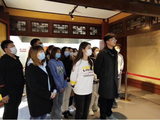 参观后,在本科生党支部成员王慕妍的带领下,全体成员一起重温入党誓词,回顾历史,展望未来,牢记入党初心,坚定使命担当,进一步激发了支部成员的爱国爱党热情,坚定了不断努力奋斗、为祖国事业奉献的信念。