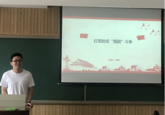罗超同志分享了红军反“围剿”斗争的历史背景和意义。在中国共产党的领导下,红军经过三年艰苦曲折的游击战争,粉碎了国民党反动派的多次“进剿”与“会剿”。罗超同志运用简洁明了的关系图向我们展示了五次反“围剿”斗争的时间、经典战役、战术、前线将领和意义等重要信息。红军在反“围剿”斗争中的战略战术思想建立在人民战争的基础之上,解决了红军以劣势兵力和落后装备战胜强大敌人的问题,这是对马克思主义军事学说的杰出贡献。